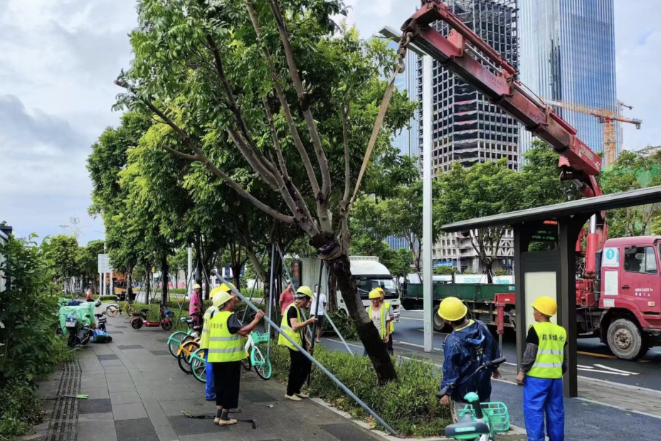 据巡查发现,前海桂湾、前湾范围的倒伏树木共计140株、倾斜树木149棵,受损树木未造成交通阻塞和人员伤害。至9月2日深夜,经市政公司组织近300位绿化作业人员连夜奋战,共处理倒伏、倾斜树木186株,清理破损树枝等垃圾27车。至9月3日已将受损树木清理完毕,恢复道路畅通。