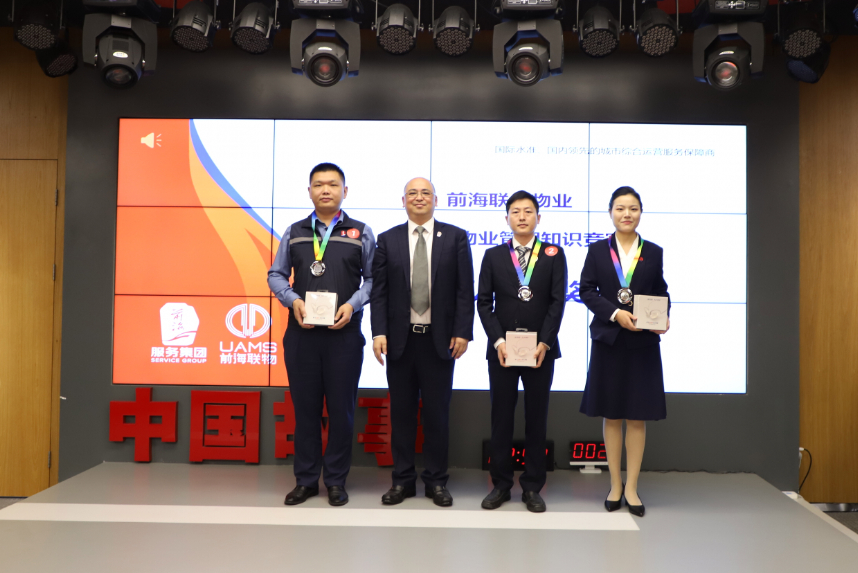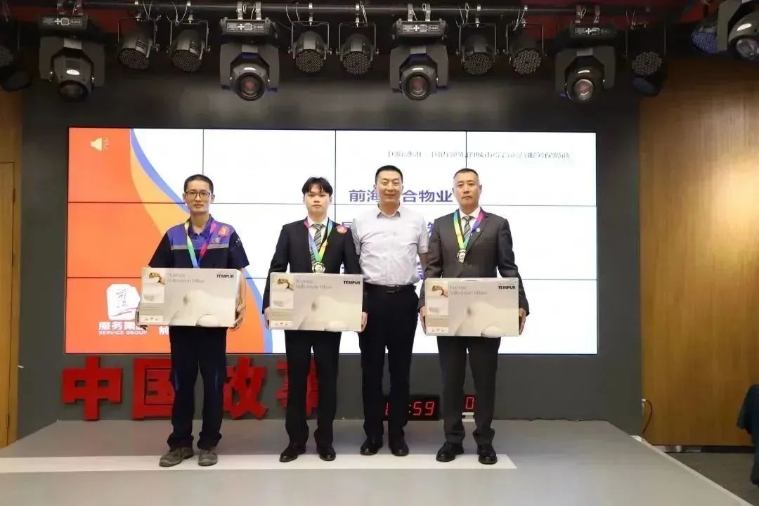 经过激烈角逐,最终第四组荣获优秀团体一等奖,第一组、第二组分别位列二、三名。汪静、许春蕾、李定政荣获现场最佳个人表现奖,前海服务集团及前海联合物业领导为获奖团体及个人颁发奖牌和获奖证书。