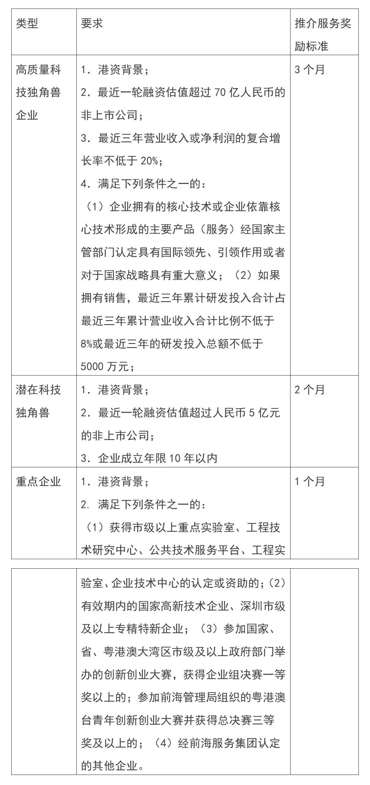 孵化服务平台机构引入重点企业,可从《促进前海深港青年梦工场园区港澳企业发展优惠方案》中“第十二条 孵化服务平台机构重点企业引进奖励申请条件与奖励标准 (二)重点企业引进奖励标准”与该方案奖励中进行二选一,不重复享受。