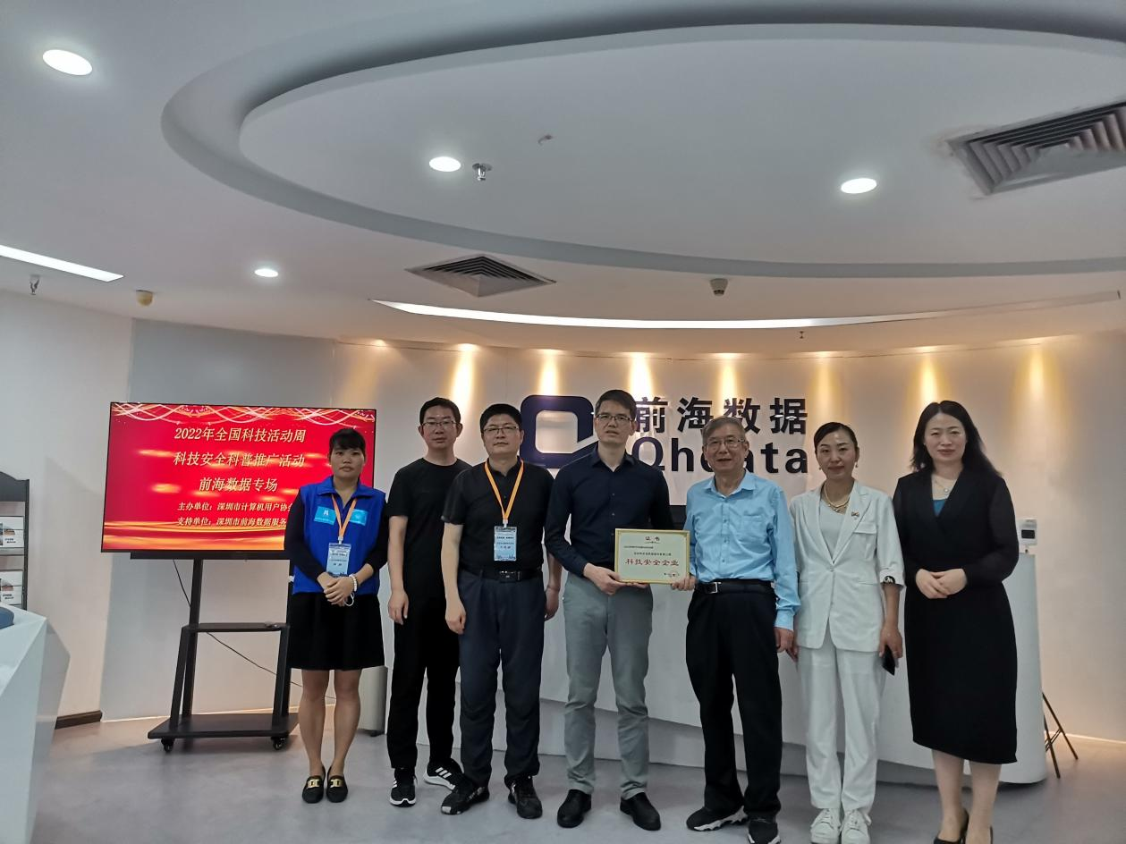 5月26日上午,由深圳市计算机用户协会主办的《2022年全国科技活动周之科技安全科普推广活动》在深圳市前海数据有限公司(以下简称前海数据公司)隆重举行,本次科技活动周的主题是“走进科技,你我同行,强化科技安全,提升风险防范意识”。深圳市计算机用户协会执行会长李蓟宁、秘书长于永翔、前海数据公司总经理苏毓腾、副总经理李丽娜等科技工作者出席了本次活动。