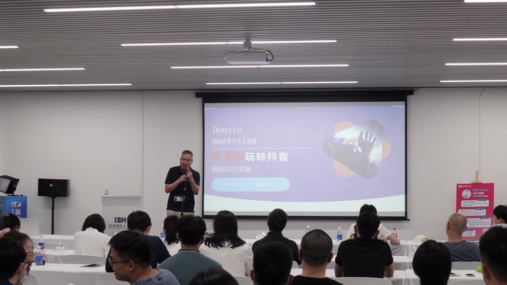 本期专场主题为“前海造浪,引爆流量”,特邀主讲嘉宾是拥有85万粉丝和2亿视频播放量的抖音达人香港Rocky哥,以及前海offer账号背后运营人Miko。他们从新媒体运营需要具备的内容策划、用户调研、视频创作、账号运营等实际能力出发,带来一堂通俗易懂、实操性强的高质量行业知识讲座。
