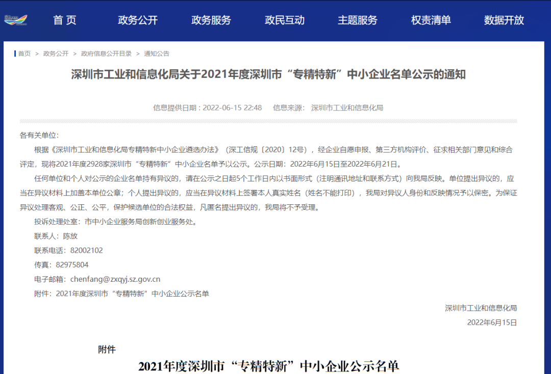 近日,深圳市工业和信息化局公示了2021年度深圳市“专精特新”中小企业名单。信通公司凭借通信创新前海模式、智慧城市建设以及技术成果转化等方面的突出表现荣登榜单。