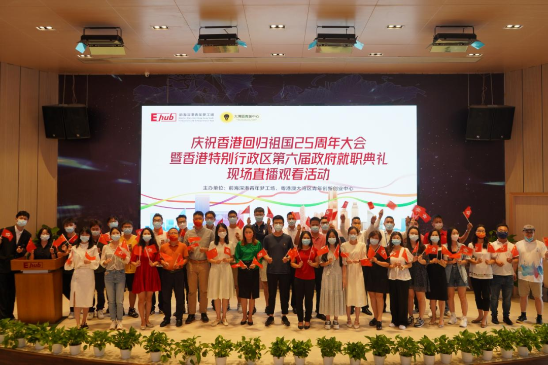 7月1日上午,30余位深港青年代表齐聚前海深港青年梦工场,集中观看了“庆祝香港回归祖国25周年大会暨香港特别行政区第六届政府就职典礼”现场直播。通过此次观看,他们对国家发展前景以及香港未来更加充满希望,进一步坚定了筑梦前海、圆梦前海的信念。此次观看活动由前海深港青年梦工场和园区孵化机构粤港澳大湾区青年创新创业中心共同举办,前海管理局港澳服务处及前海服务集团园区运营公司主要负责同志出席活动。
