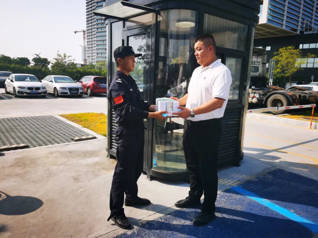 7月以来,深圳持续发布高温预警,滚滚热浪给一线安保执勤工作带来了严峻考验。然而有一群这样的人,他们不畏酷暑,风雨中巡逻、烈日下站岗,默默坚守在园区疫情防控一线。7月27日下午,前海市政公司会同福田保安公司开展“情系员工、夏送清凉”慰问活动,为一线安保岗位送来清热解暑的清凉茶,向默默奉献、日夜坚守在疫情防控一线的工作人员表示诚挚慰问,感谢他们的辛勤付出,并嘱咐大家防暑降温,保重身体。