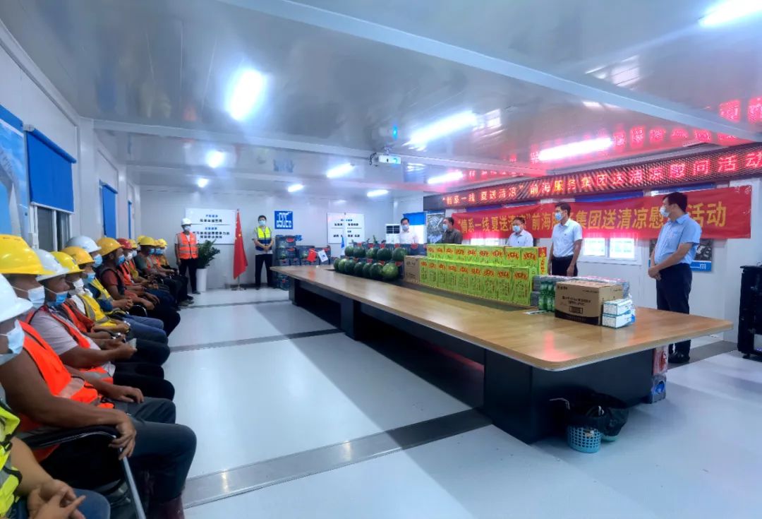 活动中,集团党委副书记、工会主席王悦对项目主管部门再三强调:要多关心一线工作人员身体健康,高温天气户外作业要注意防暑,定期安排工人体检。同时要加强防疫与安全生产工作,切实保障项目顺利平稳有序推进。随后,代建单位、监理单位与施工单位负责人纷纷表态,将严格落实以上要求,并对工人身体状况严格监控,落实应急物资和应急人员,保障防暑物资的发放,严格执行安全生产作业标准。随后,陈卫董事长与王悦副书记将防暑降温物品亲自送到一线作业人员手上,让他们切实感受到清凉和关爱。