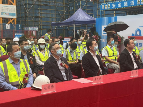 许文运总经理在致辞中表示:“项目在各参建单位精诚团结和密切合作下,克服疫情防控、强台风等各种不利影响,按计划完成主体结构施工任务,并在今天迎来主体结构封顶这一值得纪念的时刻。希望各参建单位继续保持昂扬战斗状态,以更加奋发努力的精神,严格施工管理,全面抓好工程质量、安全、进度,全力以赴把项目打造成为‘优质精品工程’,为前海深改方案落地和前海开发开放贡献力量。”