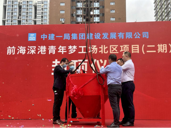 上午10时30分,前海服务集团总经理许文运,中海发展代建事业部副总经理孟志鹏、项目总监芮国存以及各参建单位代表共同投入金石,随着最后一方混凝土的成功灌注,前海深港青年梦工场北区二期项目成功实现封顶,标志着项目建设实现了里程碑式的突破。