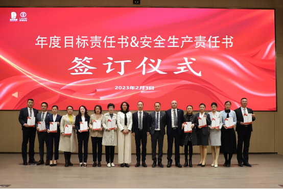 前海联合物业总经理陈文涛同志与各分管领导及各职能部门、物业运营中心负责人签订2023年度目标责任书及安全生产责任书。