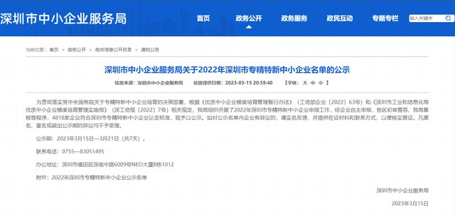 近日,深圳市中小企业服务局发布2022年度深圳市“专精特新”中小企业公示名单,前海智园公司凭借服务能力之“专”、质量管理之“精”、业态模式之“特”及核心技术之“新”,在众多企业中脱颖而出,被认定为深圳市“专精特新”中小企业。