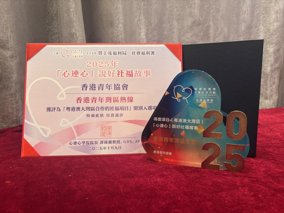 我们深信,借助此次获奖的宣传,热线将在粤港澳大湾区进一步提升知名度和影响力,为更多香港青年提供帮助和支持!